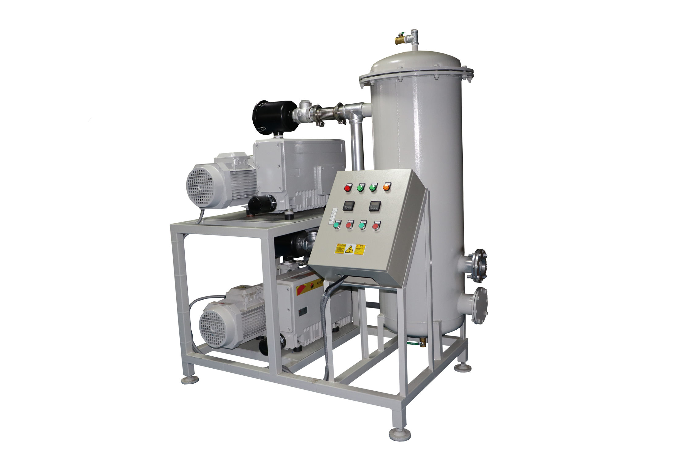 移動(dòng)式真空負(fù)壓站一般包含真空緩沖罐、真空泵、控制制箱、冷卻卻器、真空附件、真空度報(bào)警系統(tǒng);該系列負(fù)壓站包含兩種類型,即開放式真空負(fù)壓站和封閉式真空負(fù)壓站,客戶使用環(huán)境良好,操作簡(jiǎn)單,成本要求嚴(yán)格,則可做開放式真空負(fù)壓站;客戶使用環(huán)境惡劣,有大量粉塵,可凝性氣體,腐蝕性氣體等環(huán)境,則做成封閉式。